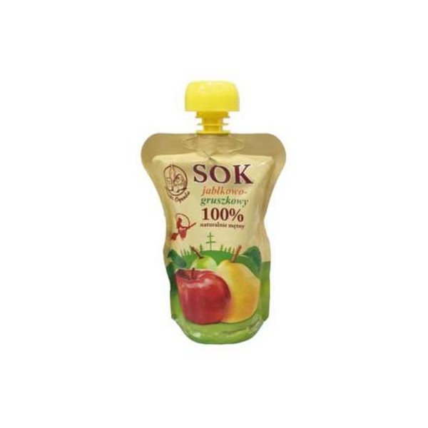 Sok jabłkowy 100% naturalnie mętny. Tłoczony bezpośrednio z całych jabłek. Dzięki łagodnej pasteryzacji sok jest utrwalony, a przy tym nie traci cennych składników odżywczych. Barwa i smak soku może róznić się w zależności od zastosowanej odmiany owoców. Mętność i osad na dnie są zjawiskiem naturalnym. Opakowania typu pouch, w które rozlewany jest sok, są najwygodniejszym rozwiązaniem dla najmłodszych – do szkoły i na wycieczkę.